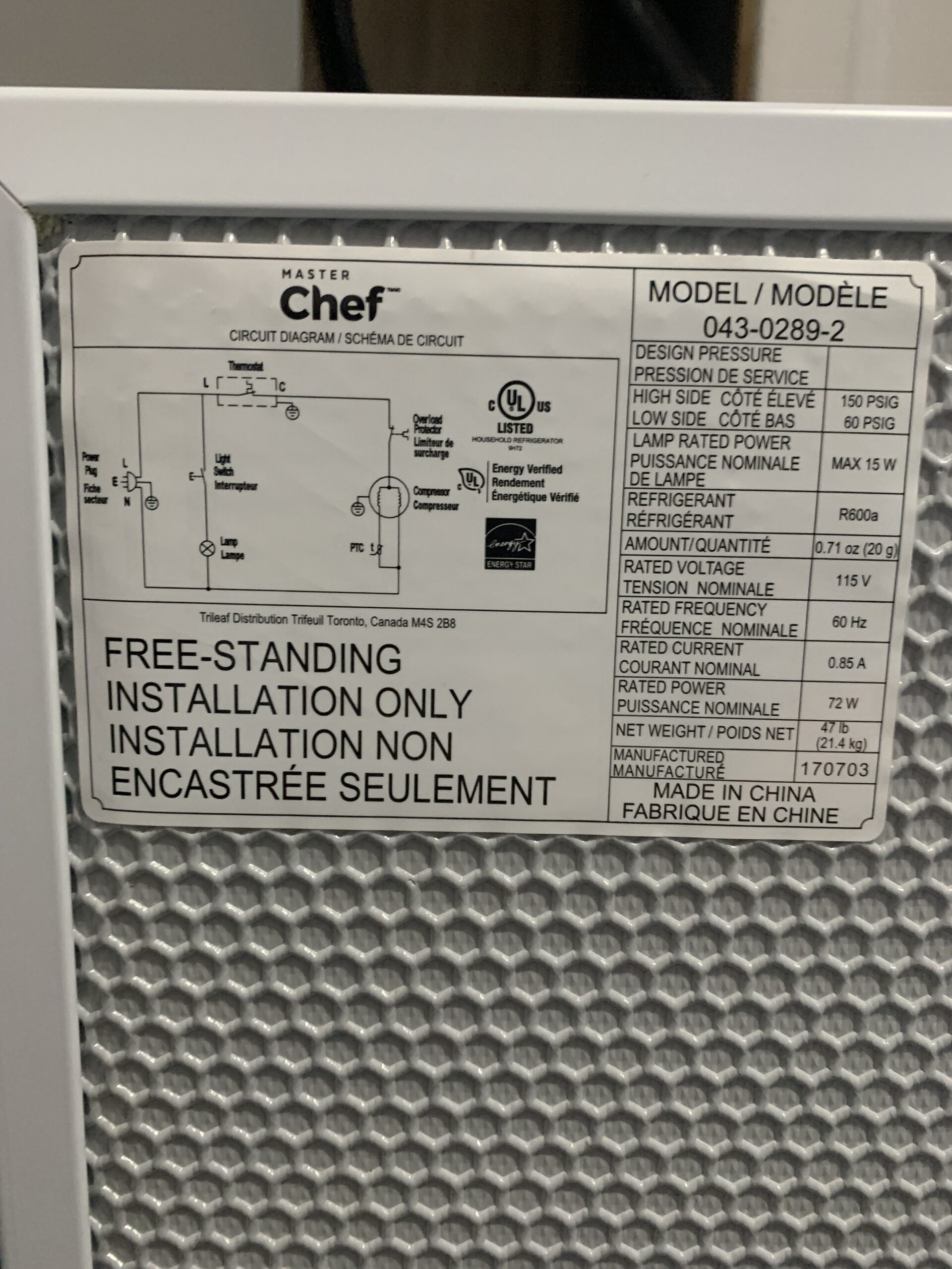 Master Chef mini fridge